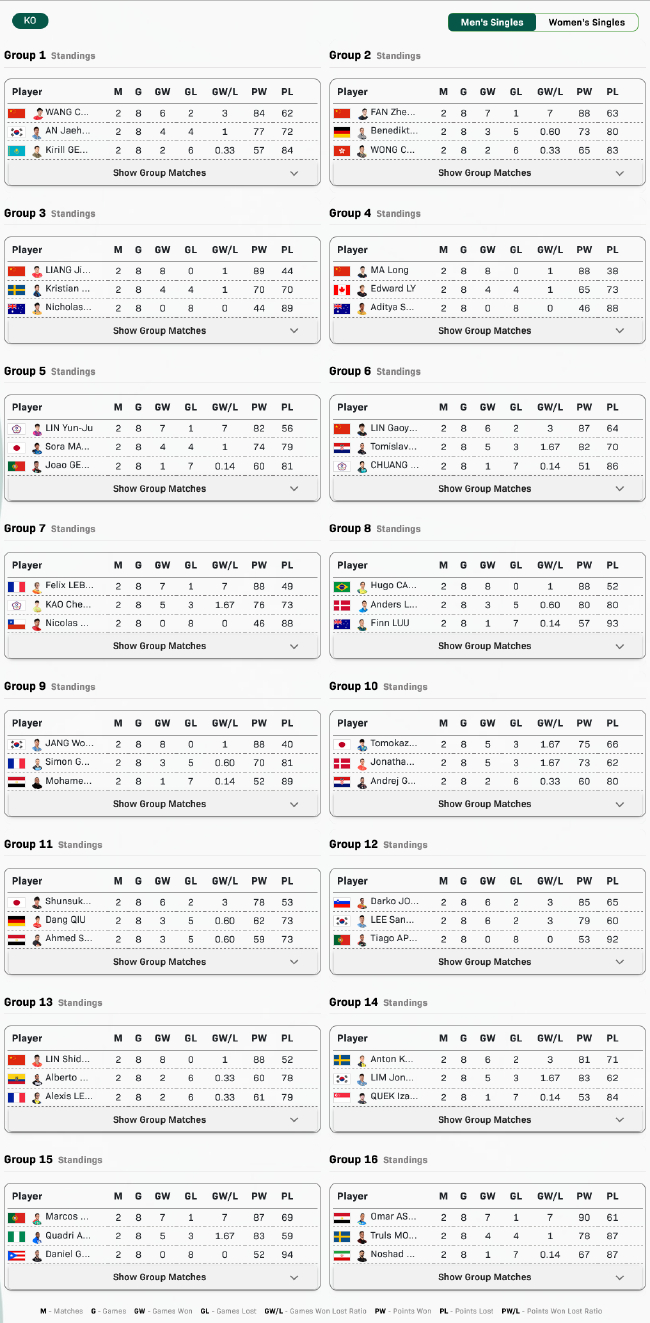 随后出场的林诗栋用时31分49秒,连胜4局,最终以4-0(11-7/11-8/11-8/11-4)横扫法国选手A-勒布伦,挺进淘汰赛。首局,中国小将在6平后连下4分奠定胜局;之后3局,林诗栋皆是在大部分本事占据着跳跃上风。