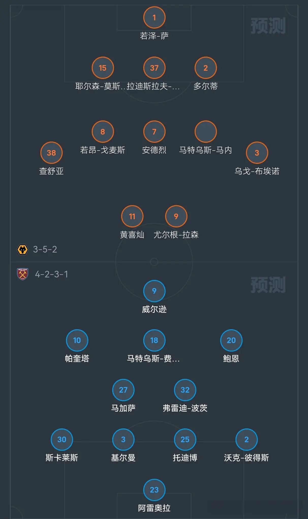 上一轮狼队在客场1-1战平曼联,本轮靠近一样处于左迁区的西汉姆联,主场作战的狼队例必要全力求胜。