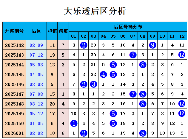 上期回来:大乐透第2026001期奖号为:前区07、09、23、27、32,后区02、08,前区奖号012路比为2:1:2,奇偶比为4:1,后区开出2路、2路组合02、08