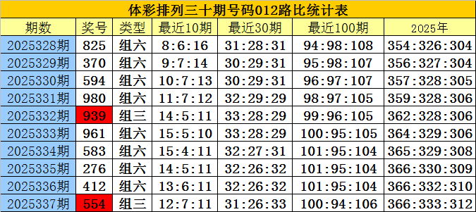 开奖纪念:成列三第2025337期奖号为:554,号码012路比为0:1:2。