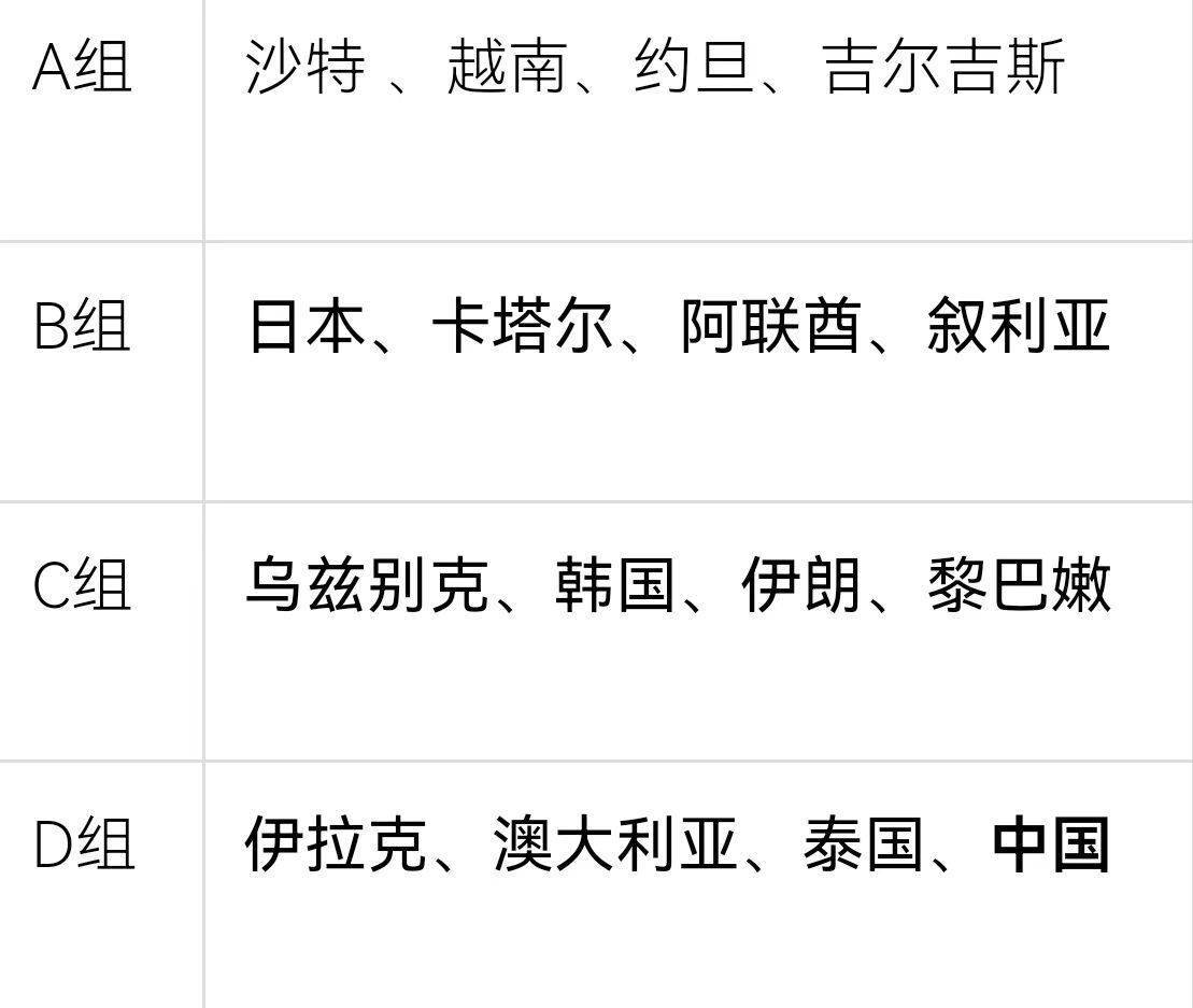U23亚洲杯分组情况↑从分组来看