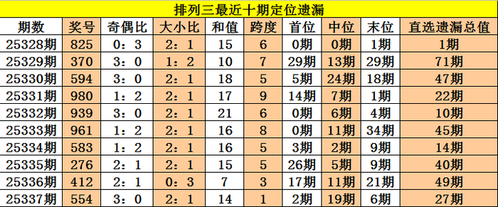 开奖回来:摆列三第2025337期奖号:554,定位直选遗漏值2期、19期、6期,遗漏总值为27期。